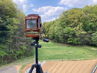 風があり、雲があるから光の変化が激しく新緑撮影の難しさを現場で実感。中学新一年生に囲まれ、何してるのか不思議がられた。