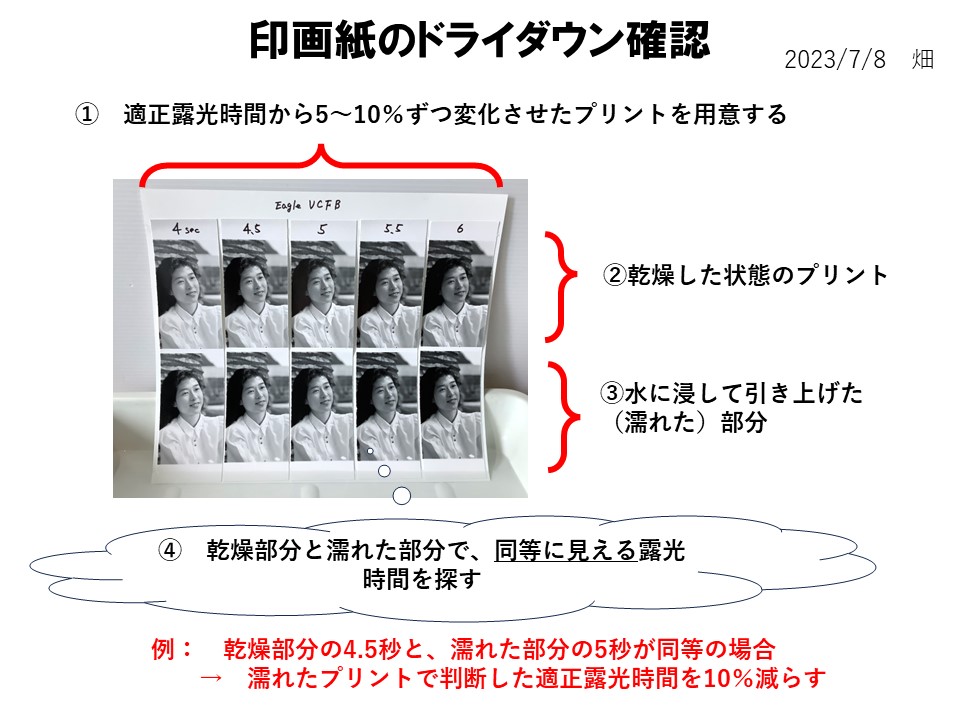 印画紙のドライダウン確認方法