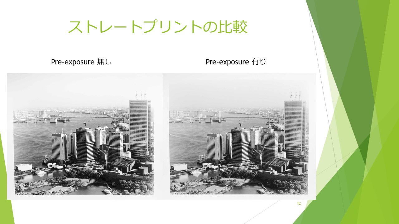 ・印画紙に、予めわずかな「カブリ露光」を与えておくことで、ハイライトのトーンを出すことが出来ます。